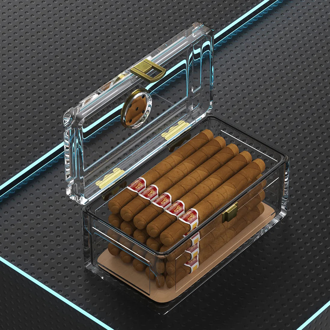 Acrylic Hygrometer Humidifier Cigar Case Fit 15-20 Smoking Accessories