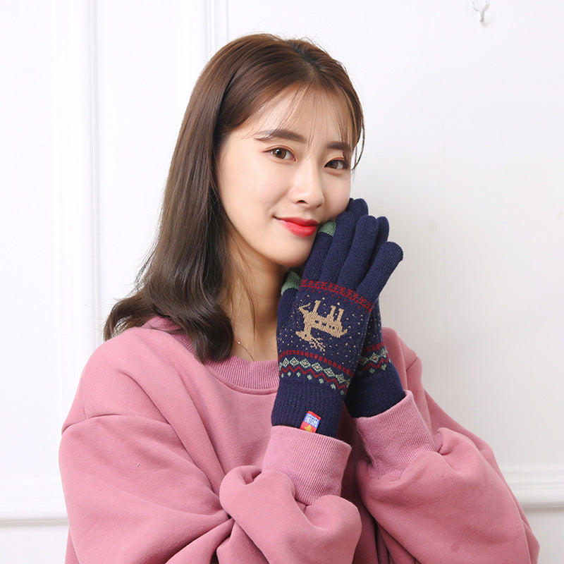 Autumn and winter cashmere double deer plus velvet thick warm gloves Christmas gift cartoon knit touch screen finger gloves