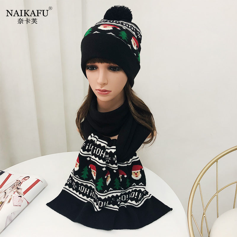 Autumn and winter new European knit christmas hat hair balls, cute children's Christmas scarf set custom wholesale