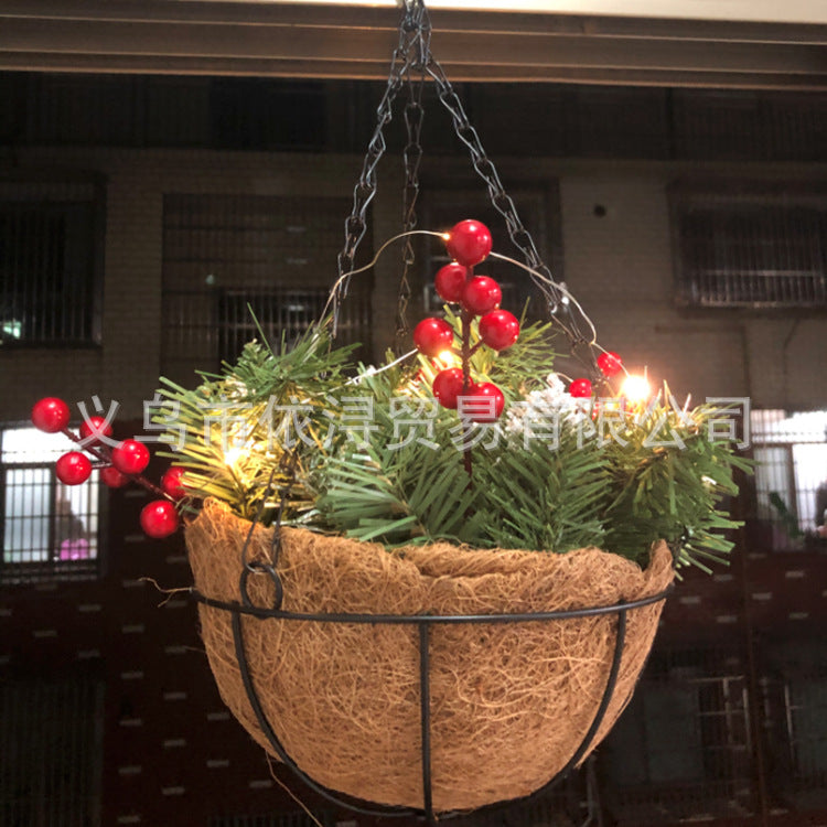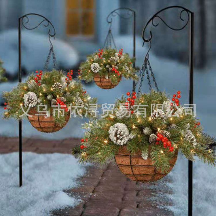 Christmas hanging basket wreath decoration Christmas artificial hanging basket Christmas simulation pine cones pine needles green plants hanging basket wreath