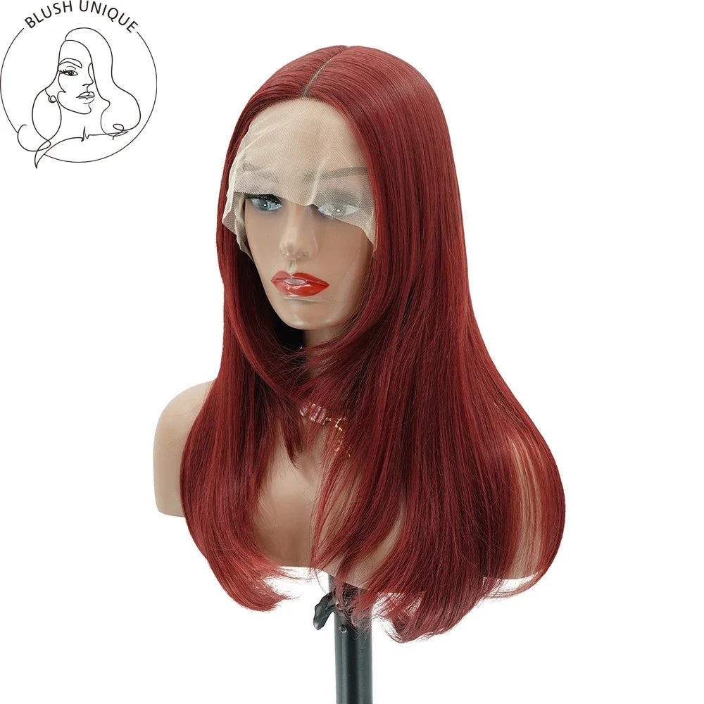 Copper Red Layered Synthetic Lace Wig - Burgundy Straight Cut, Glueless, for Black Women