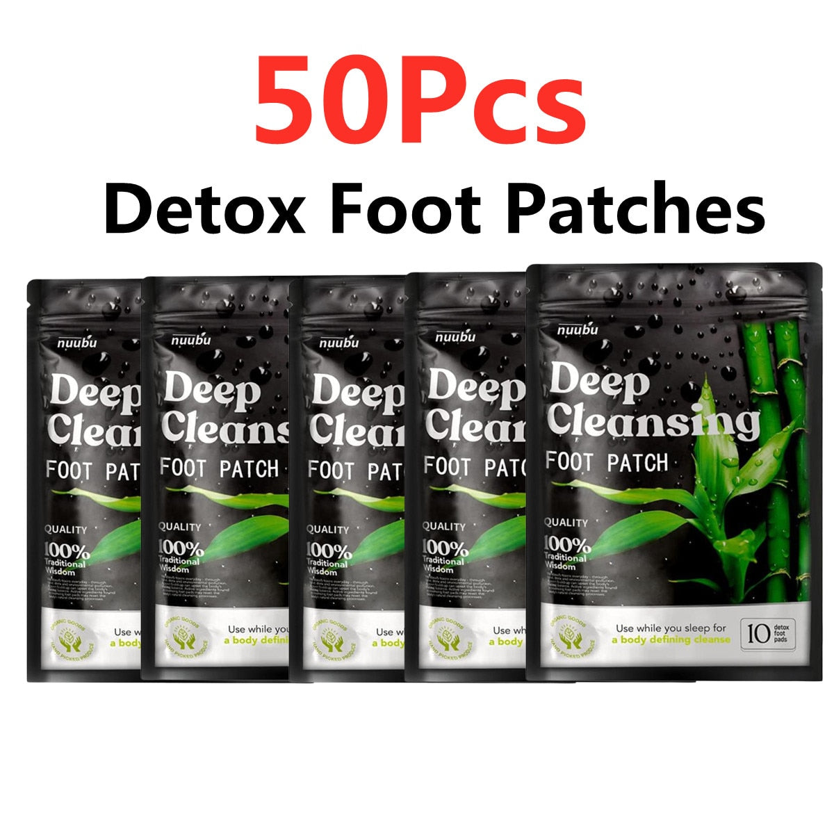 cleansing detox feet plasters created with natural ingredients used to detox the body from bottom to top through the combination of herbs delegated inside each package.