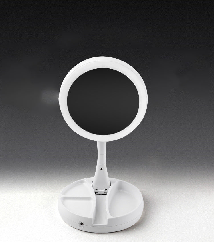Foldable Led Light Makeup Mirror Storage Tray LED Face Mirror Adjustable USB Led Vanity Backlit Mirror Table Cosmetic Mirror