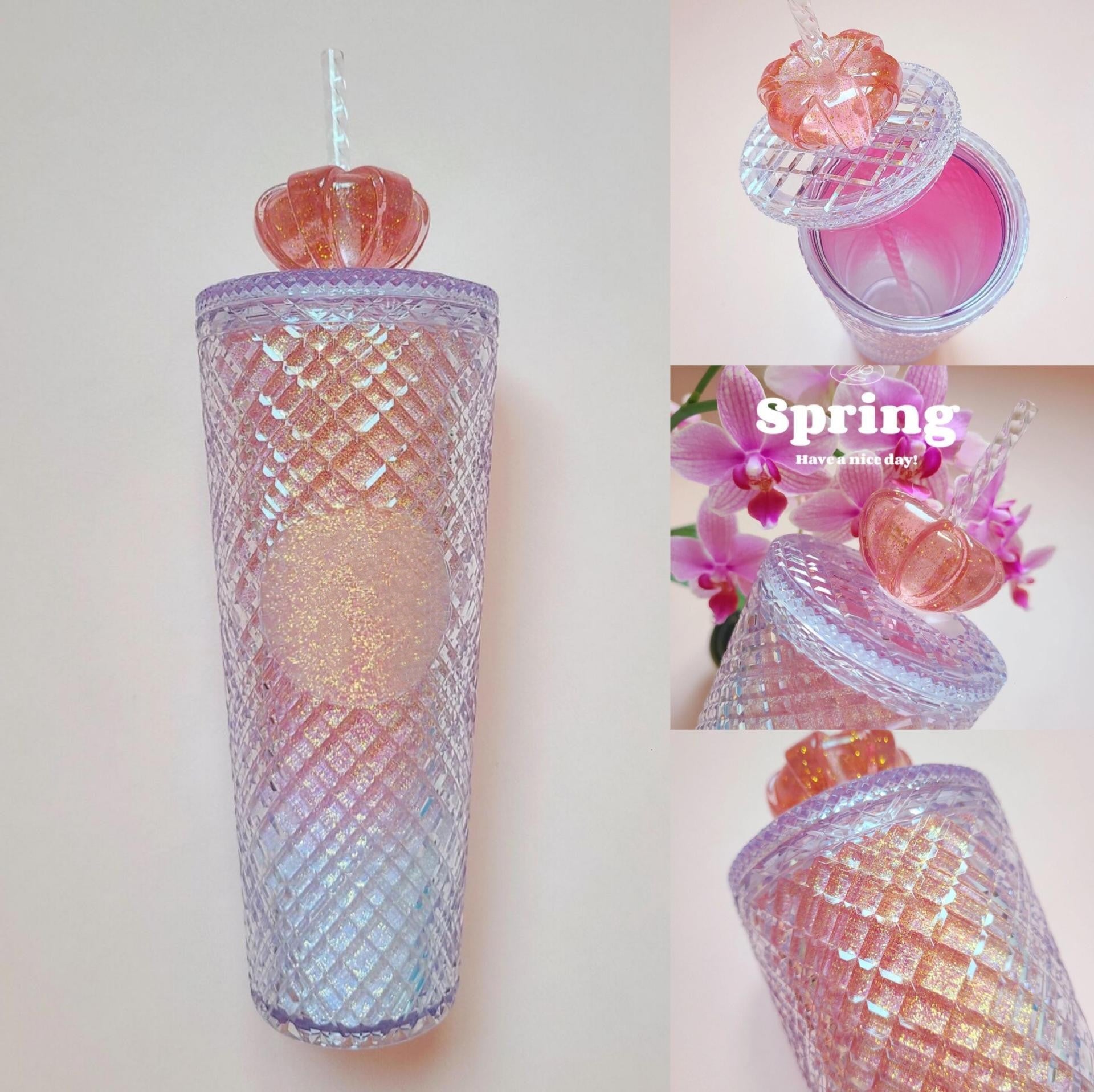Limited Edition Valentine's Day Crown Straw Cup with Double-Layered Insulation and Studded Plastic Cover