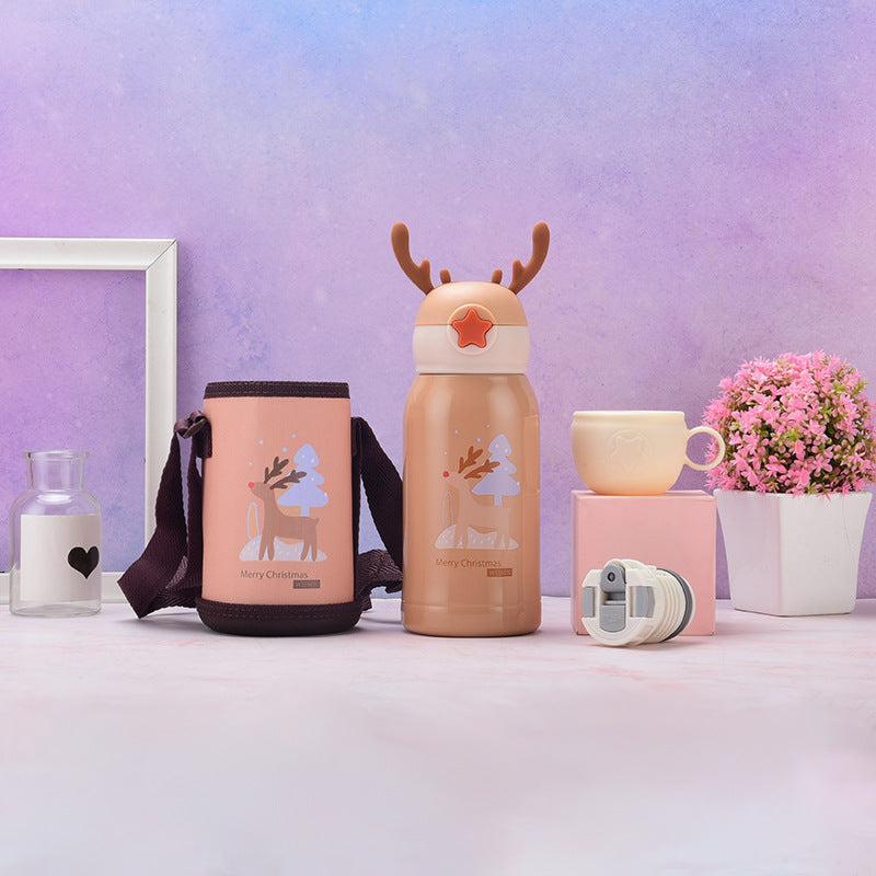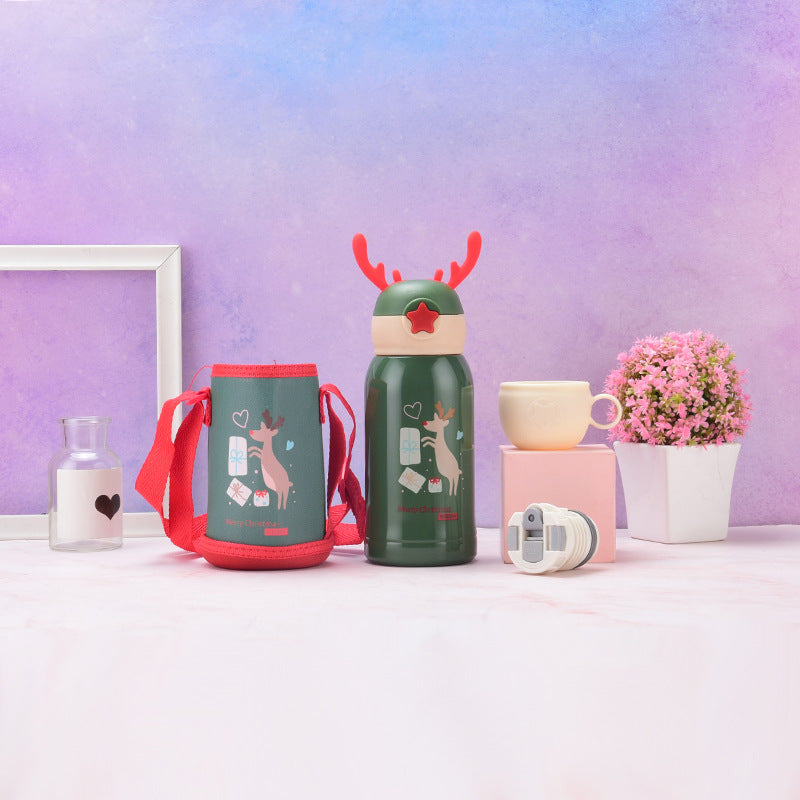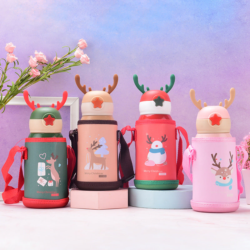 New Christmas 316 stainless steel thermal insulation cup Outdoors portable children's cartoon cup set straw cup wholesale custom