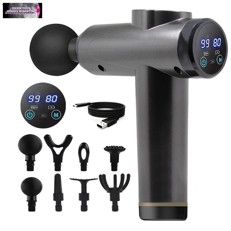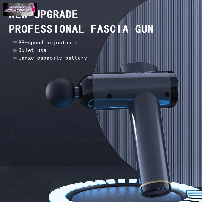 Introducing our New Fascial Massage Gun, a sophisticated and exclusive device that offers muscle relaxation and vibration to help soothe your neck, back, and legs. Its compact design makes it portable for your fitness needs. Say goodbye to tension and hello to luxurious muscle relief.