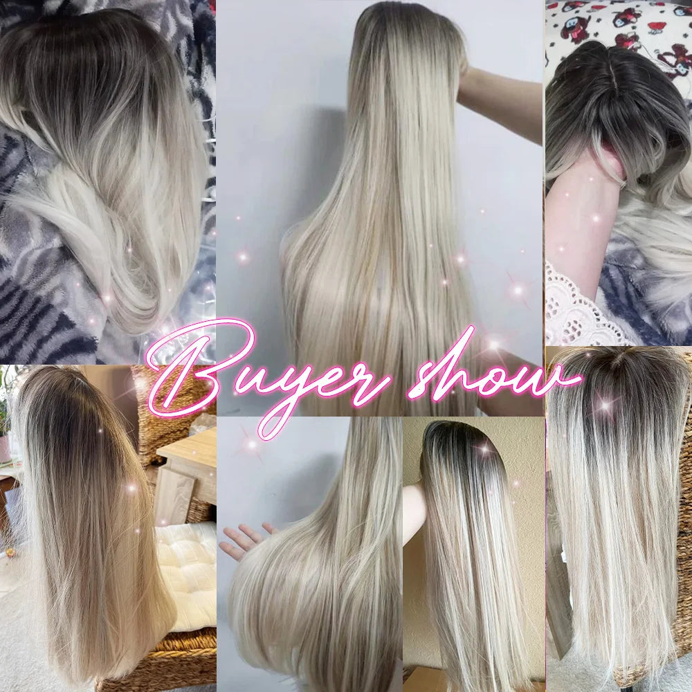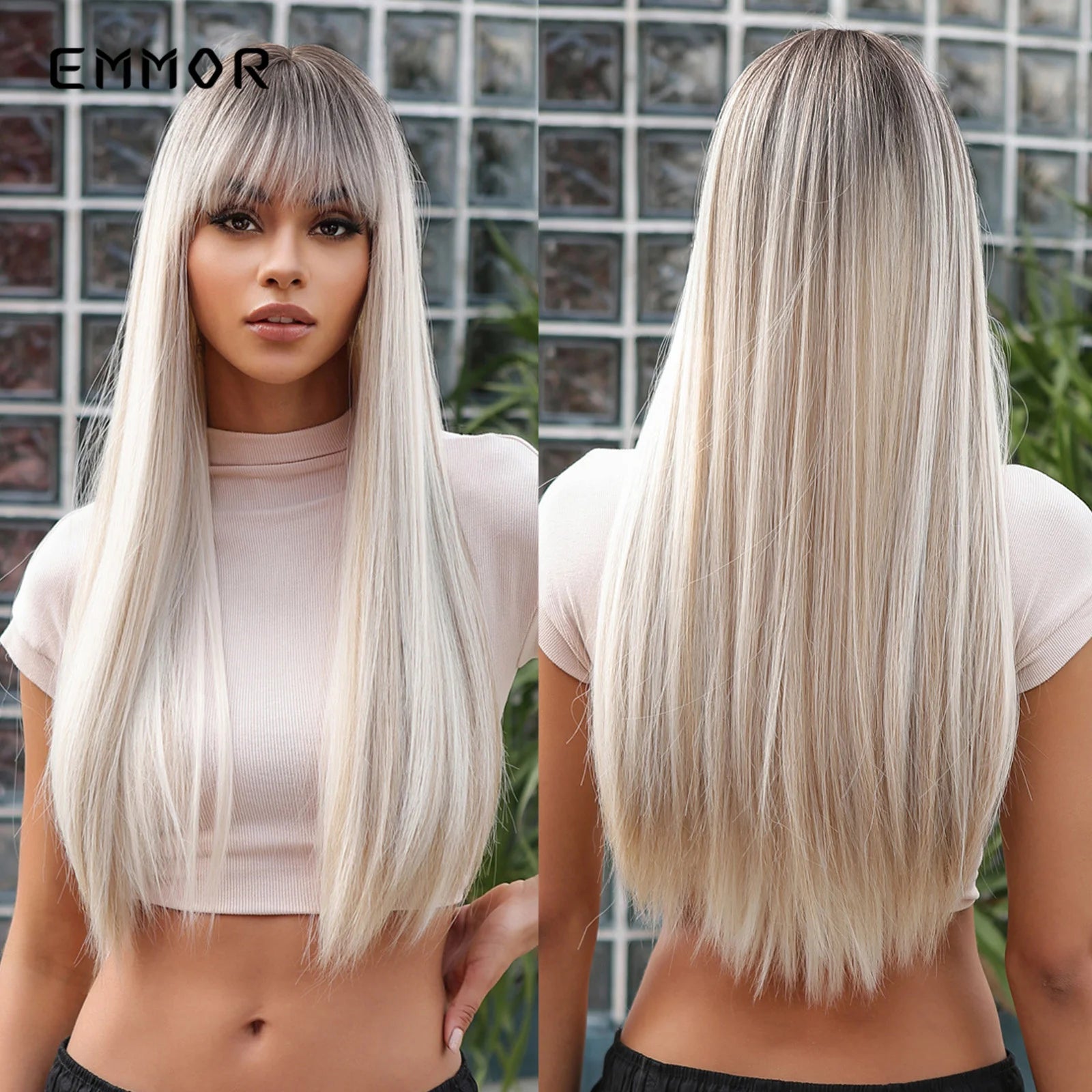 Platinum Blonde White Wig with Bang - Long Natural Straight Cosplay Wig for Women - Heat Resistant Synthetic Hair