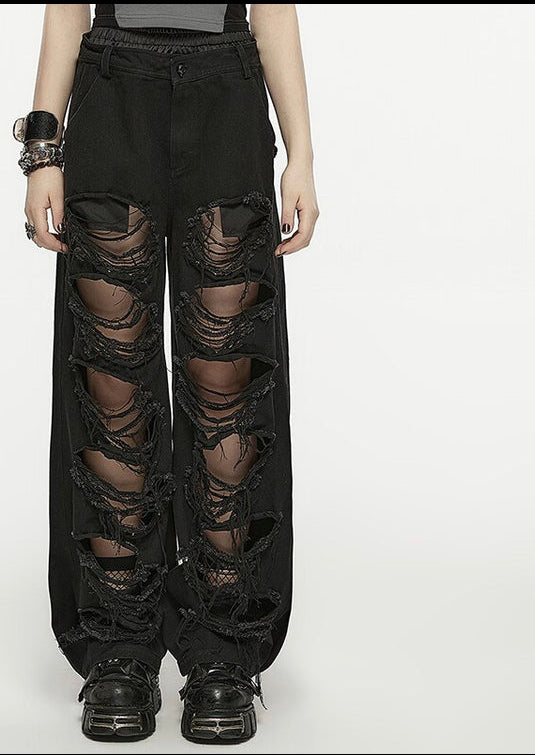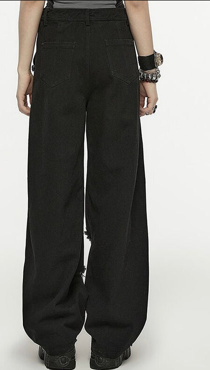 PUNK Elastic Waist Denim Hip-hop Pants Casual Loose Trousers