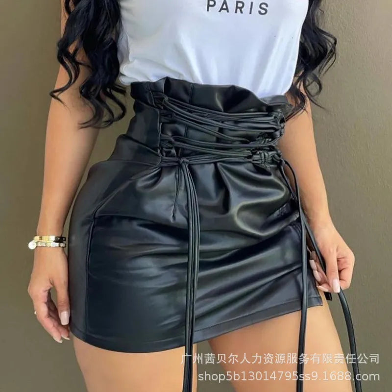 Short Skirt 2023 Women Summer New Elegant Sexy Split Slim High Waist A Line Mini Skirts Lace Up Female Streetwear Office Lady