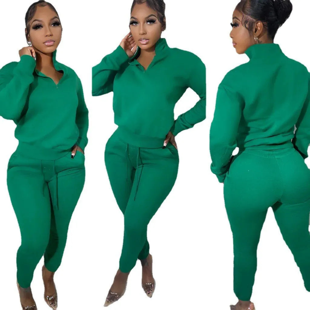 Tracksuit Women Set Two Piece Outfits Fleece Zipper Long Sleeve Pullover Top Jogger Pants Casual Sport Suit Running Matching Set