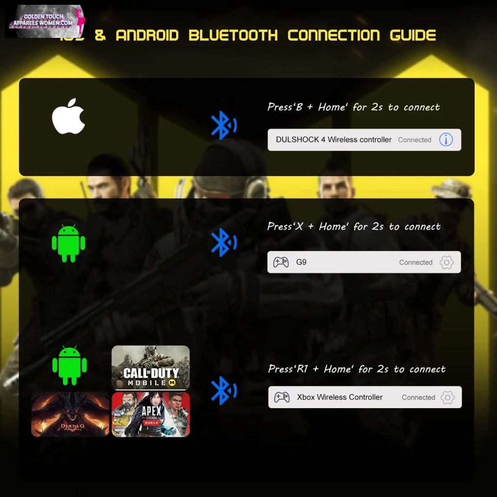 Description:Introducing our top-of-the-line Wireless Mobile Gaming Controller, the ultimate solution for all your gaming needs. Compatible with iOS, Android, and PC devices, this controller offers a seamless gaming experience with its Bluetooth connectivity and low latency. With a 15-hour playtime and detachable D-pad, you can enjoy long gaming sessions without any discomfort. Plus, our controller is perfect for popular games like COD Mobile, Genshin Impact, and more. Get yours now and elevate your gaming experience to the next level. Limited time offer, grab yours today!