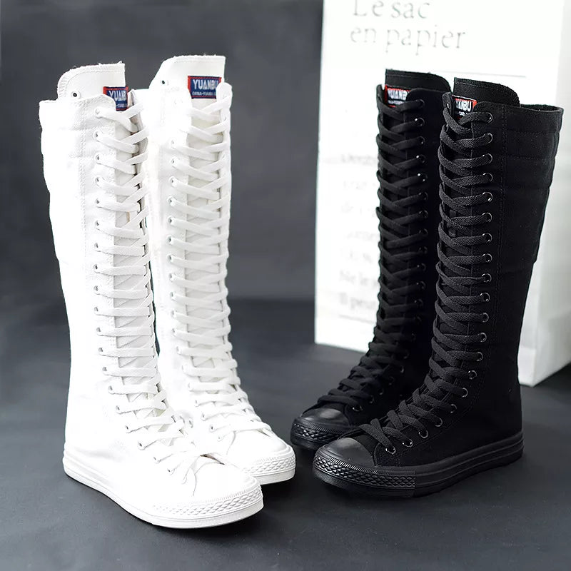 Women's High Top Canvas Sneakers with Lace-Up Zipper - Comfortable Flat Boots for Spring and Autumn, Tenis Feminino